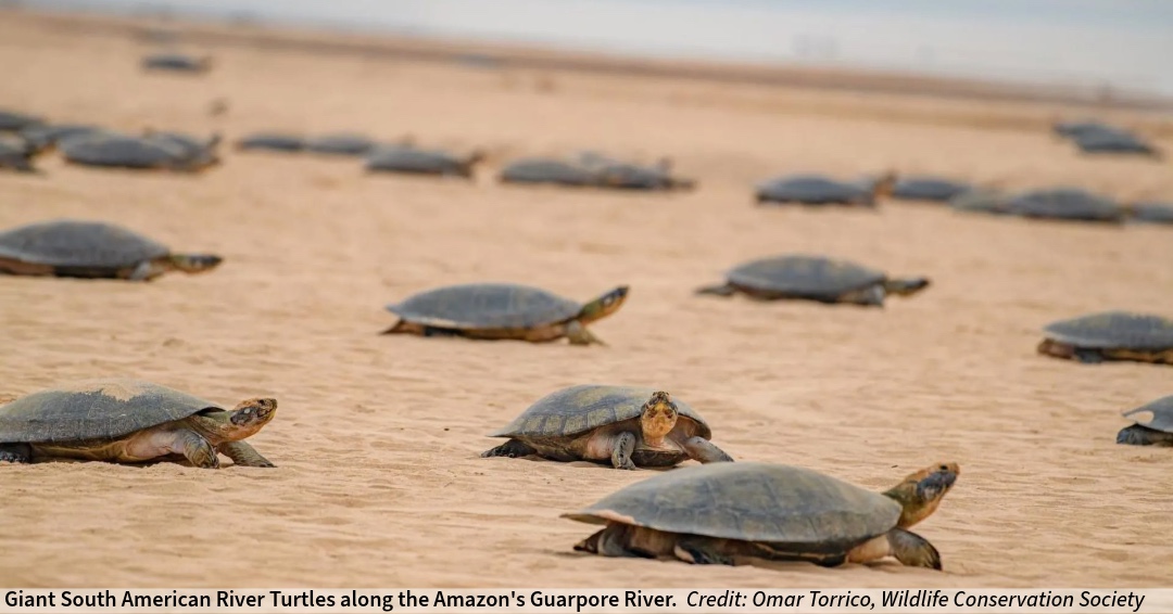 The project began with Wildlife Conservation Society (WCS) researchers in Brazil, Colombia and Bolivia. One of the species the New York-based organization monitors is the Giant South American River Turtle, which is threatened by poachers who sell its meat and eggs. The turtles are exceptionally social creatures, and females congregate each year in July or August to nest in the Guaporé River sandbanks between Brazil and Bolivia.