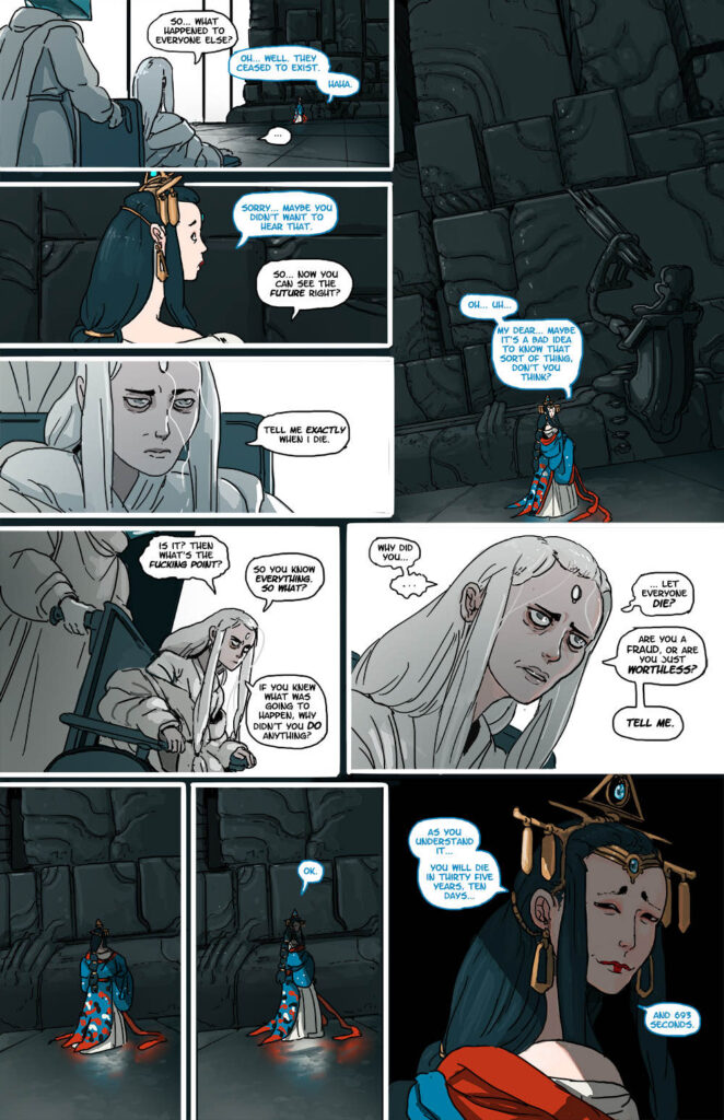 In the fifth chapter of this series—adapted for print from the successful webcomic Kill 6 Billion Demons—sorority sister Allison Ruth has seen it all. Ripped away from her comfortable and mundane life to Throne—the multiversal metropolis at the center of all worlds—she has been unwittingly swept up in an ancient feud between tyrannical god-kings and become the host of a power she can neither understand nor control. She has broken into the grand palace of the Blood Flower, plunged the depths of the vault of the grand dragon Mammon, and fought tooth-and-nail in god-emperor Solomon’s interdimensional martial arts tournament.