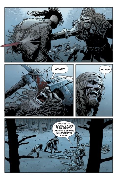The real reason the Vikings fled North America! This barbaric adventure begins in 1003, when Leif Erikson established a Viking settlement in Vneland (present day Newfoundland), a strange new world of plenty. But this untamed frontier is populated by more than an indigenous people… This is something unnatural that stalks the night… Twenty years after the original expedition ended in disaster, a new attempt to settle this wilderness is made. Ulf and his hardened tribe of Vikings soon discover that the whisper of creatures who are both human and beast are not primitive legend, but death-bringing reality.