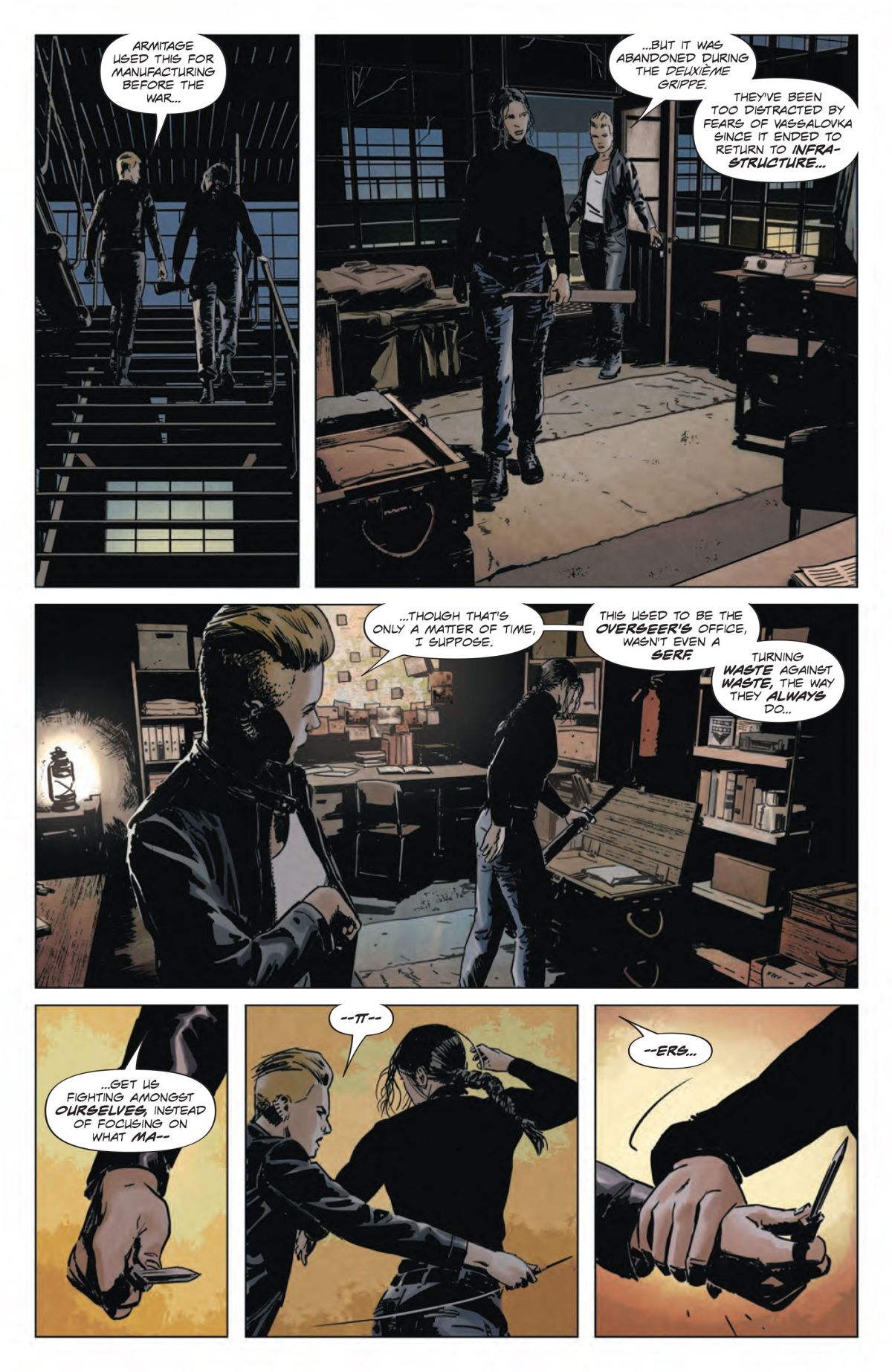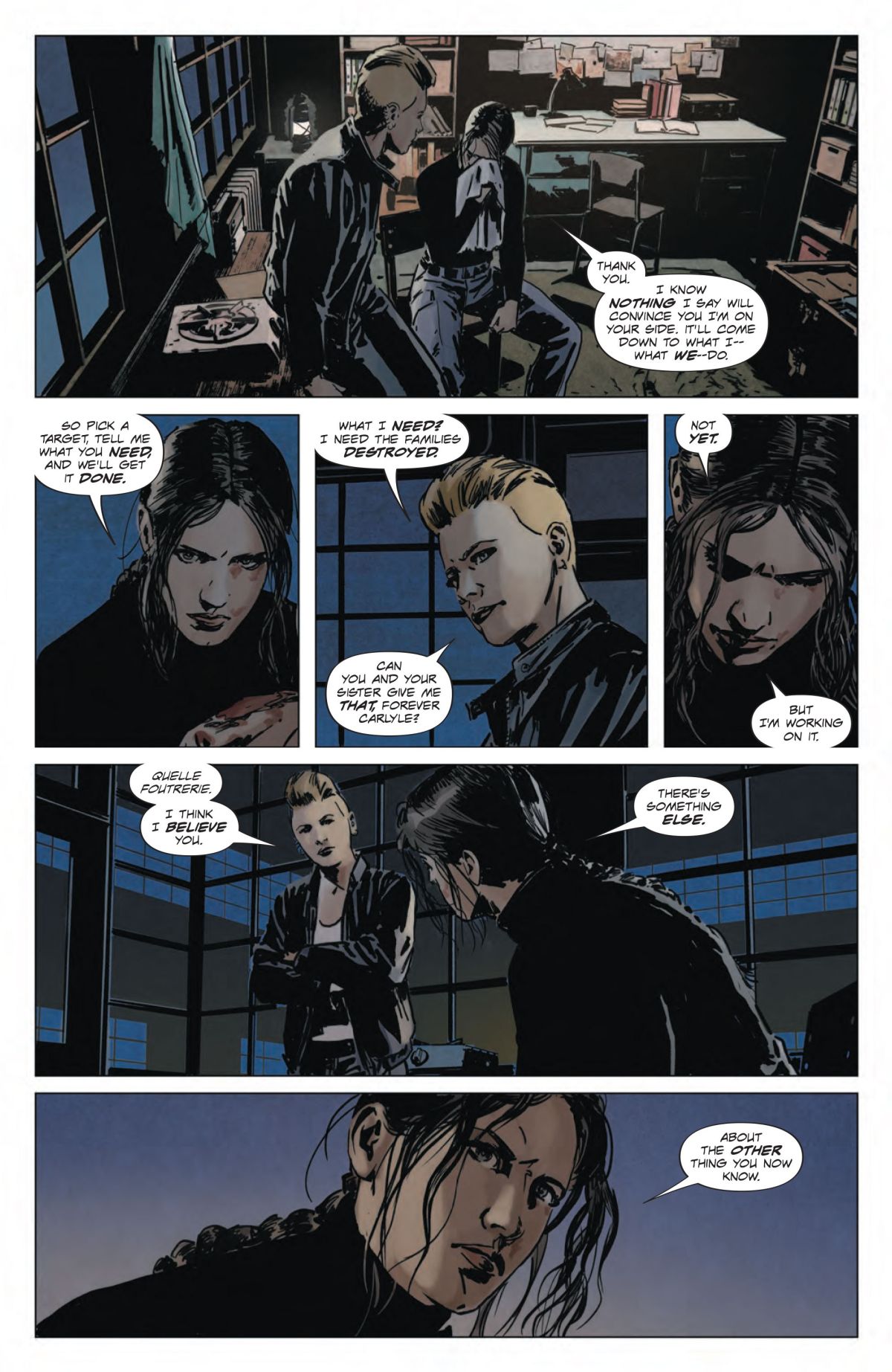 “The first arc, ’Rise’—which is taken in part from the Free slogan of ‘Rise, Resist, Be Free’—very much hits the ground running, dealing with the immediate repercussions of the end of Lazarus: Risen,” said Rucka. “It’s been less than two days in the story since the end of Lazarus: Risen, and Lazarus: Fallen is throwing the reader right back into the action and the story. That’s deliberate. Readers are smart, and they know how to read and extrapolate from context, so new readers to the series will be able to understand what’s going on. That said, it’s going to be a far more rewarding read if you know how we got to this point.”