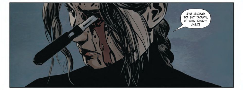 An early preview of the highly anticipated upcoming series Lazarus: Fallen shows that lead character Forever Carlyle is not afraid to get bloody to prove her point. As she sets out to destroy the Families–the wealthy few running this “near future” dystopian world—she’ll need to make allies along the way. Helmed by Eisner Award-winning creators writer Greg Rucka (The Old Guard) and artist Michael Lark (Gotham Central), and colorist Santi Arcas, the New York Times bestselling dystopian sci-fi series Lazarusis returning for a final installment.