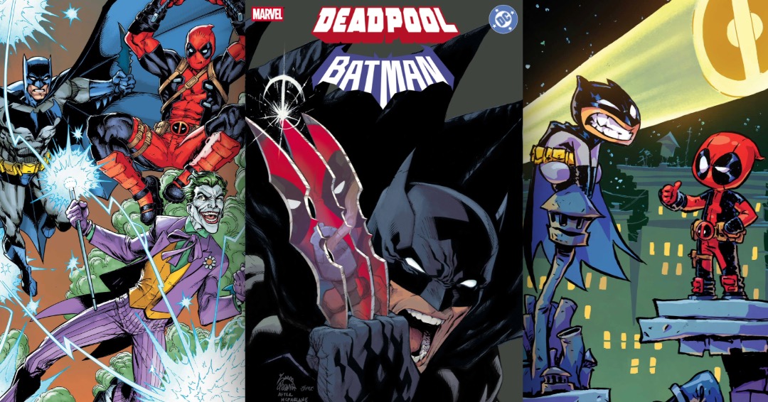 All three covers spotlight the main event—Deadpool and Batman crossing swords and batarangs after Wade Wilson is hired for a job in Gotham City. Will the Caped Crusader help him or destroy him?