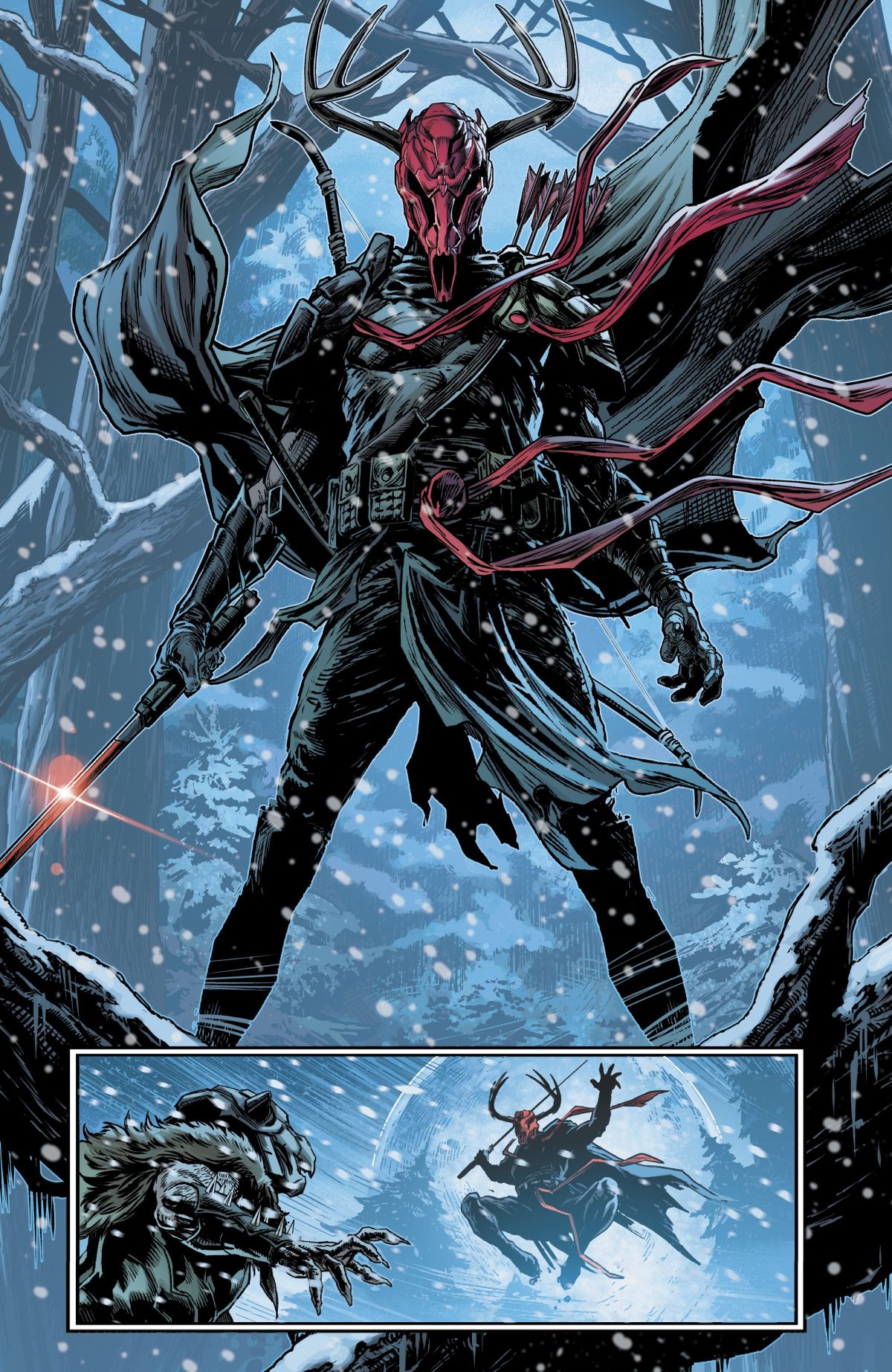 “[Bloodhound has] kind of been driven mad by the instinct influence of his mask,” said Fabok. “Envision the character almost like a rabid dog, like a werewolf. And he’s out there, and he’s kind of stalking the North. We also have a brand-new character that we hinted at in [Rook: Exodus #3] called Stag. He’s searching for Bloodhound as well—but he wants to take his life.”