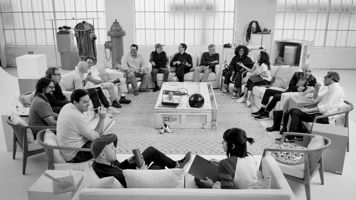 Table read for 'Spaceballs 2'. Clockwise from the top - Director Josh Greenbaum, Bill Pullman, Keke Palmer, Daphne Zuniga, George Wyner Jeb Brody (Producer), Taylor Stuewe (Associate Producer) Austin Lee (Associate Producer), Benji Samit (Writer), Dan Hernandez (Writer), Adam Merims (Line Producer/EP), Anthony Carrigan Lewis Pullman, Josh Gad, Rick Moranis. (Credit: Amazon MGM Studios)