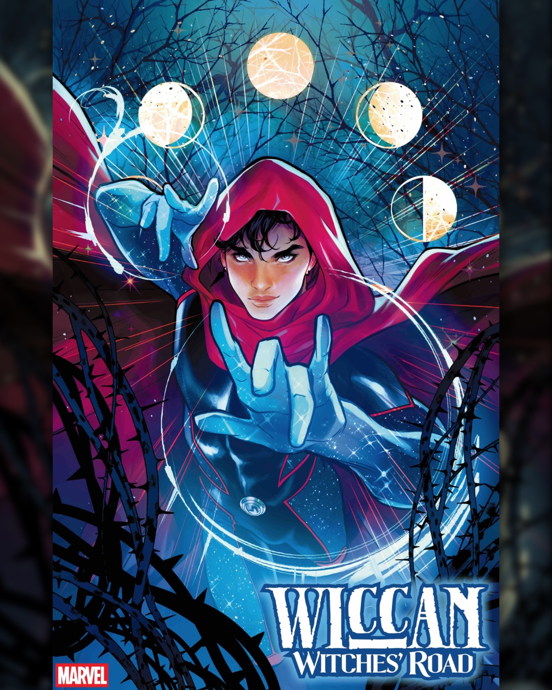 Following Wiccan and Hulkling’s part in Jonathan Hickman’s IMPERIAL, Hulkling’s life on the line, forcing Wiccan to take a spellbinding trip down, down the Witches’ Road, where he’ll face a new enemy and discover his unique role in protecting Earth from magical threats.